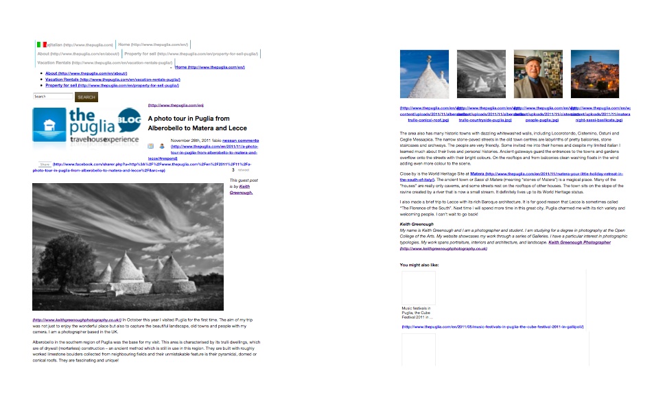 It has been a big day for getting things published. I was asked to write an article for the Puglia Blog and this I did. It was published today along with four of my photographs. The article is below…