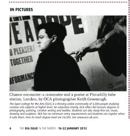 I have had a third photograph published in the Big Issue of the North….I am pleased as it was one of my personal favourites – a street shot captured at Piccadilly Underground.