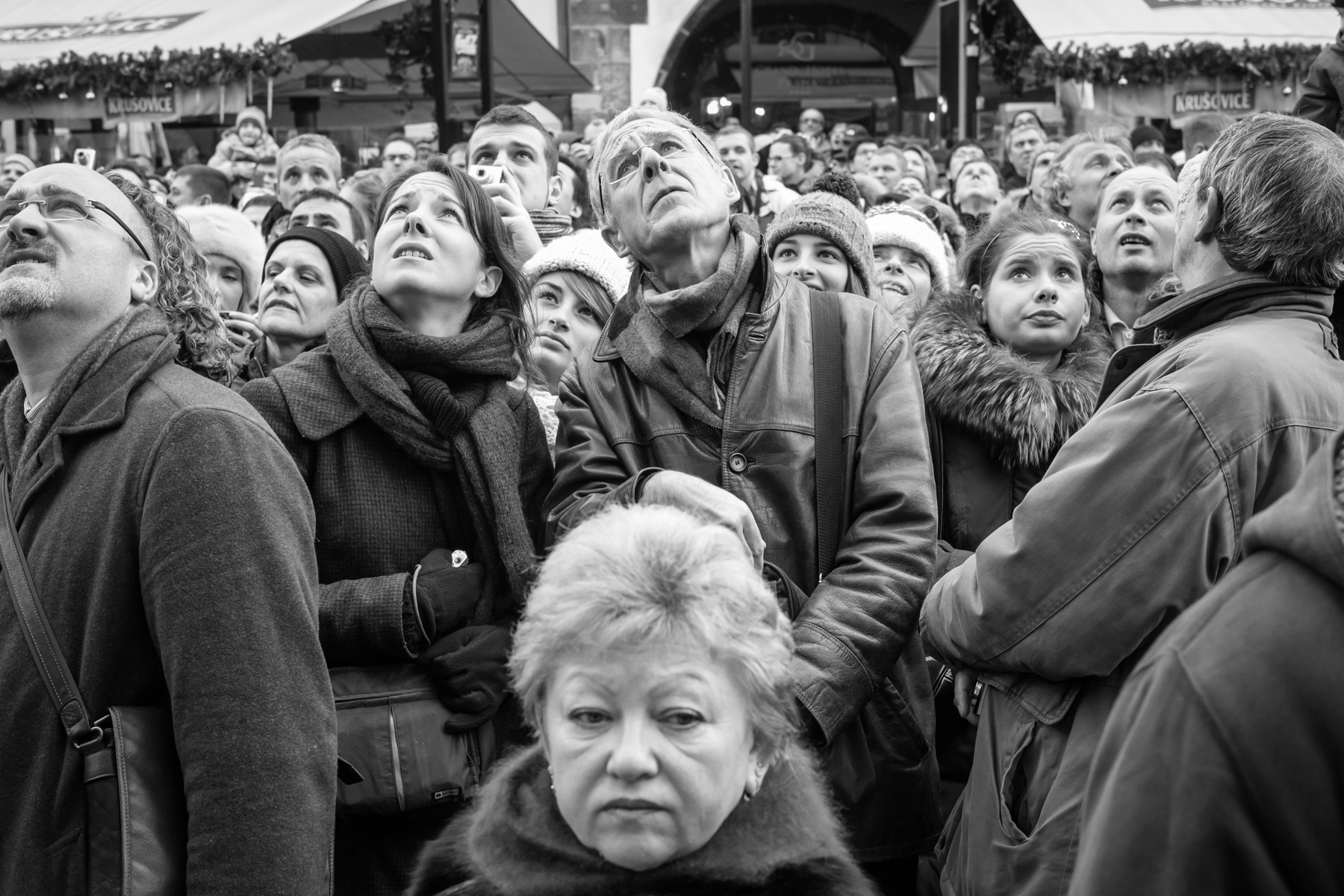 These people are all looking up at the Astronomical Clock located on a side tower of the Old Town Hall. A crowd like this gathered on the hour every hour!!