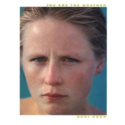In You are the Weather Horn’s installation presents 100 photographs each of which is a headshot of the same young woman (Margrét Haraldsdóttir Blöndal). In each, she is submerged up to her neck in an Icelandic hot spring. Each photograph was taken on a separate occasion and we are invited to link her expression to changes in the weather. The photographs were shown at an exhibition ‘Roni Horn aka Roni Horn’ at the Tate Modern in 2009. In the installation the photographers were arranged in a line around the room. See here.