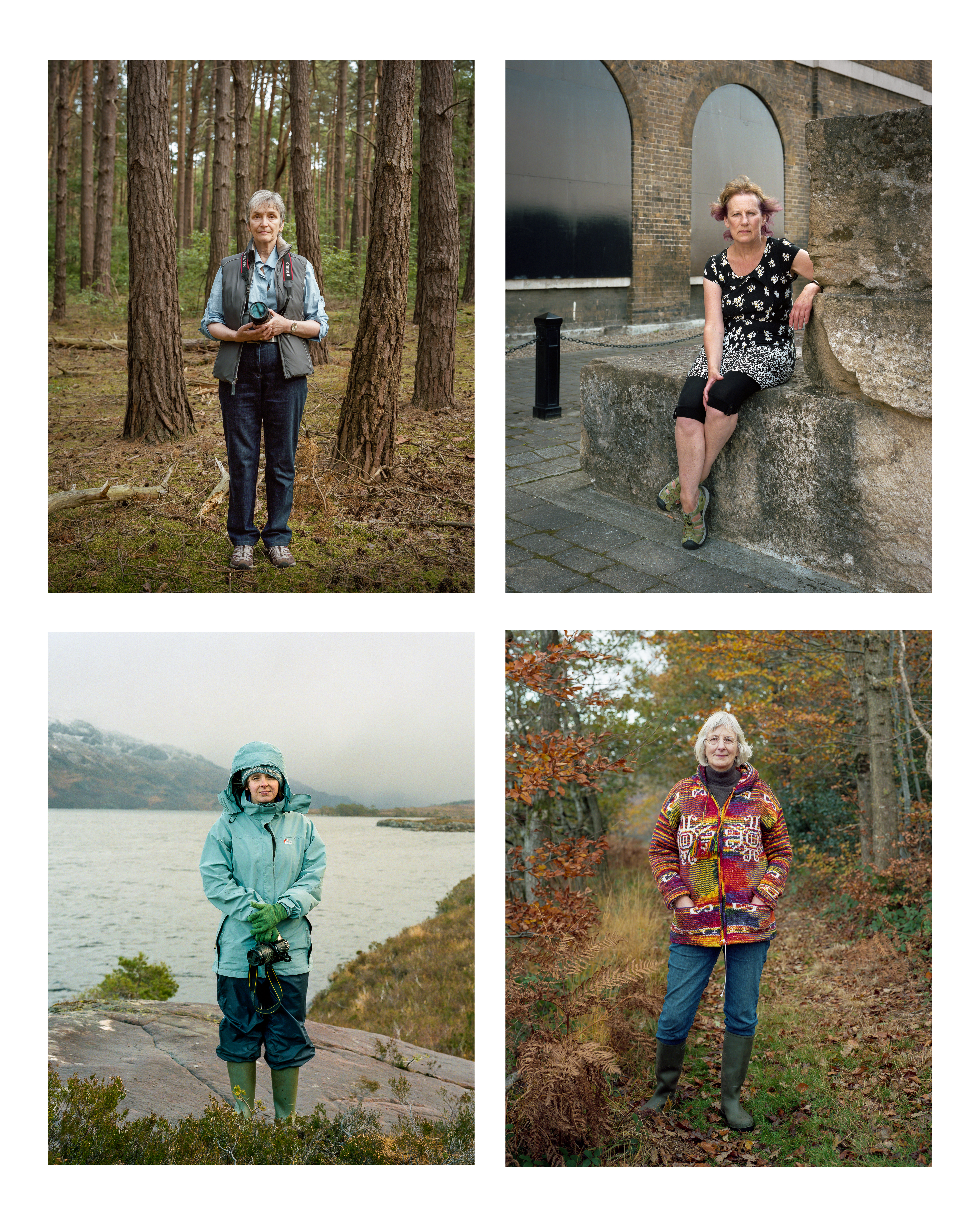 The portraits I  have made so far are shown below. From top left clockwise, Catherine Banks at Horsell Common Surrey, Gill Golding at Woolwich Arsenal London, Paddy Howe in the Blackdown Hills Devon and Rebecca Hughes at Loch Maree Wester Ross Scotland.
