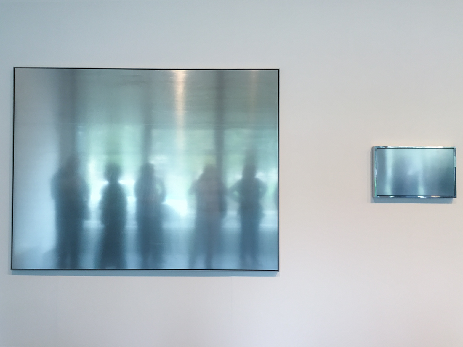 This was the first exhibition we visited and in many ways the most fascinating as no photographs were presented. After Image is a series of works created by the removal and destruction of earlier photographs. These photographs had been previously mounted onto aluminum substrates. All that now remained was the shiny aluminium surfaces and the frame surrounds. There were several images of different sizes and aspect ratios. In a sense a photographic work had been transformed into a sculptural form. I took this work as being a conceptual piece which alludes to the nature of photographs (per The Physical Level in Stephen Shore’s The Nature of Photographs). (1) The absence of an image emphasises the fact that a ‘photograph is flat, it has edges, and it is static’ (2). The different aspect ratios of the works signals the conventions with regards to aspect ratios, which is largely driven by historic film sizes — 4×5 inches, 6 cm square and so on. The way in which photography is bounded by the physical media and by convention is foregrounded. The illusory nature of photographs, which simulate, but don’t replicate three dimensional space is exposed.