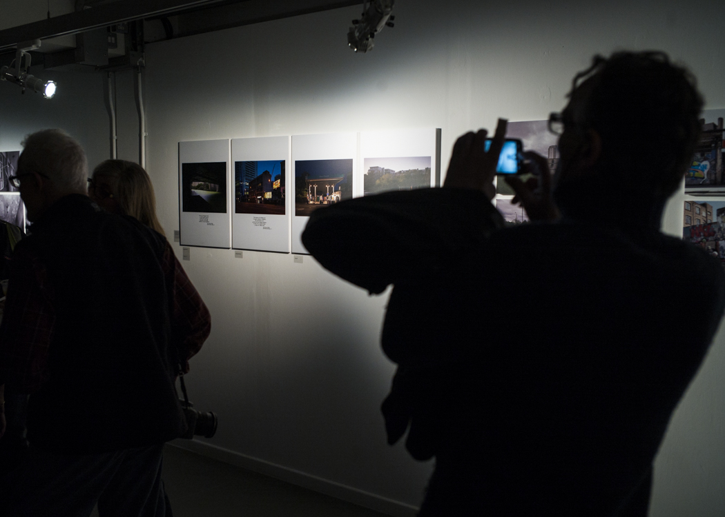 Most of the other work at the exhibition was much more people oriented. Some of it street photography, some portraiture. There were a few other works that pictured ‘Edge-land’ type landscapes and more abstract work. My work was the only work that featured image and text. From this perspective my work must have been more difficult for the viewers to comprehend. I was therefore pleased that many people took the time to look at the work closely. There were several well known East London photographers exhibiting — Steve Lewis, Phil Maxwell and David Hoffman have all been photographing East London people for many years. Quite a few of the images on show were old dating back to the sixties. Much of the work is in black and white. A number of photographers were exhibiting portraits that were very well done….