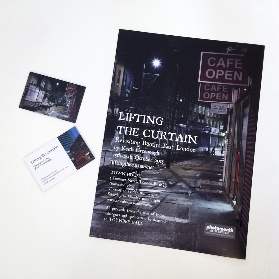 I have also prepared a mock up of a poster for the exhibition and some ‘Lifting the Curtain’ business cards. I hope to place the posters in cafe’s stores and so on around Spitalfields, Bethnal Green etc. in the month running up to the Exhibition.
